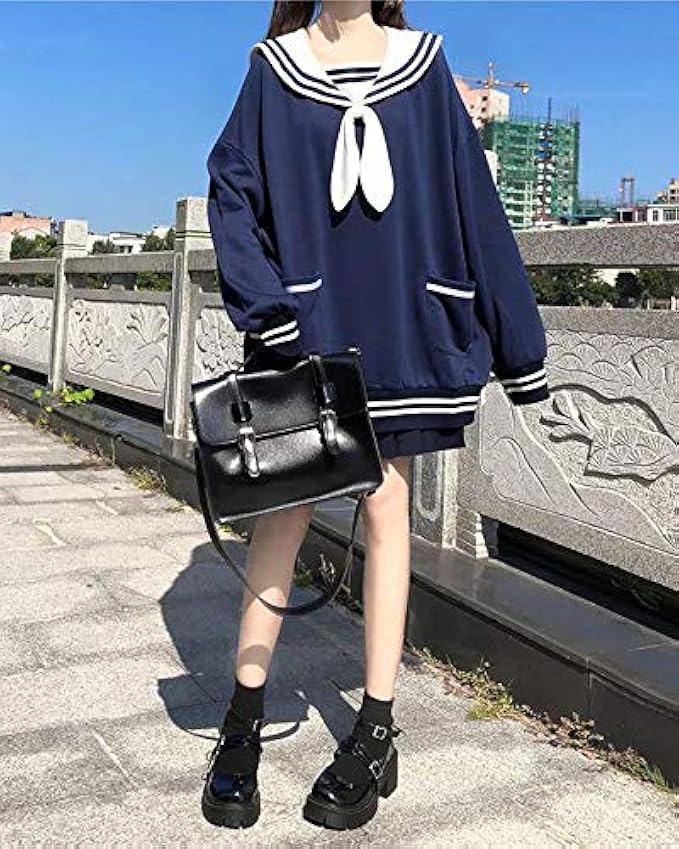 • ❤ 特点:可爱卡通女式运动衫超大码,水手领日本动漫洛丽塔风格,可爱蝴蝶结,可爱兔子耳朵设计,长袖