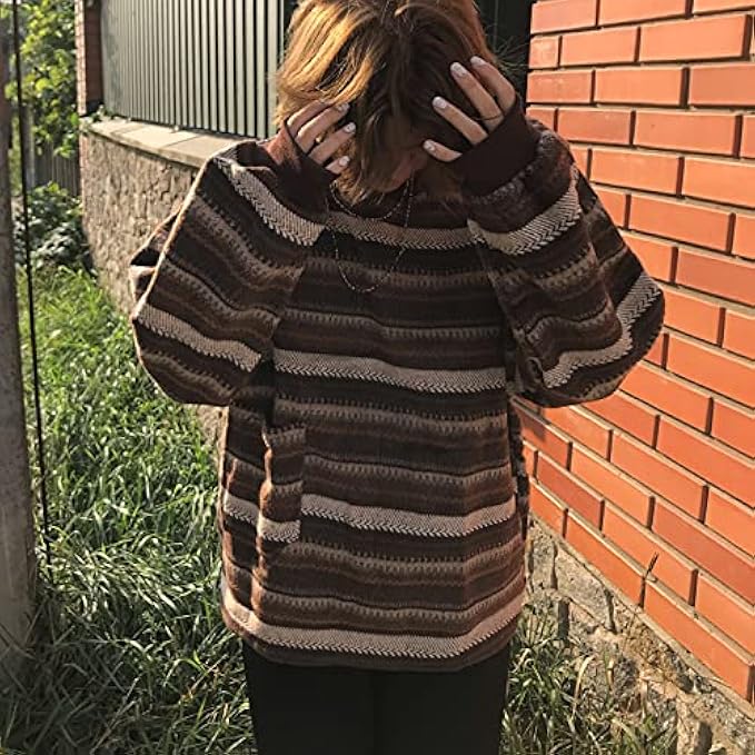 • 這款條紋毛衣在寬鬆毛衣上具有溫暖、協調的顏色。 搭配牛仔褲和靴子,極致舒適。