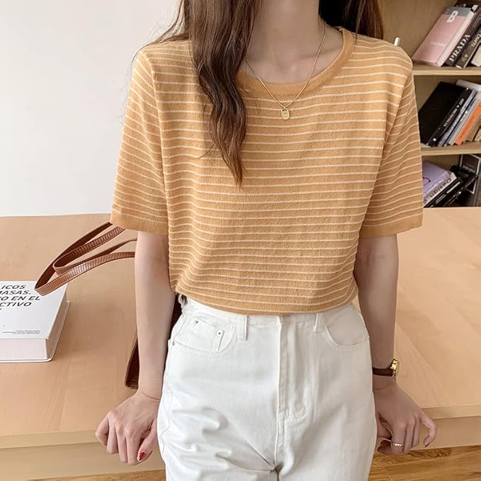 Classic Striped T Shirt Women Summer Casual Loose O Neck Short Sleeve Tees Female Korean All-Match Cotton Basic Tops Girls